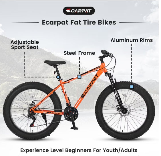 Product name: S26109 Elecony 26 Inch Fat Tire Bike Adult/Youth Full Shimano 21 Speed Mountain Bike, Dual Disc Brake, High-Carbon Steel Frame, Front Suspension, Mountain Trail Bike, Urban Commuter City Bicycle